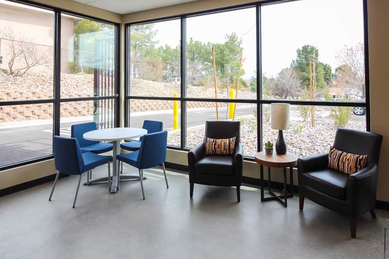 Lobby of a self storage facility leasing office.